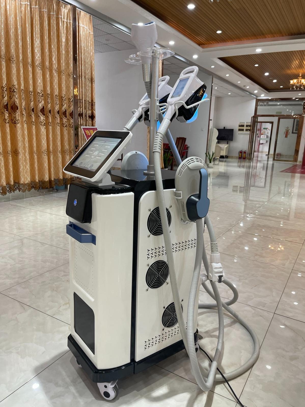 is a powerful, non-invasive body contouring system that combines two of the most in-demand aesthetic technologies: fat freezing (Cryolipolysis) and electromagnetic muscle stimulation (EM Sculpt). Designed for professional use in aesthetic clinics, dermatology centers, and beauty salons, this machine delivers safe, effective, and long-lasting body sculpting results without surgery or recovery time.